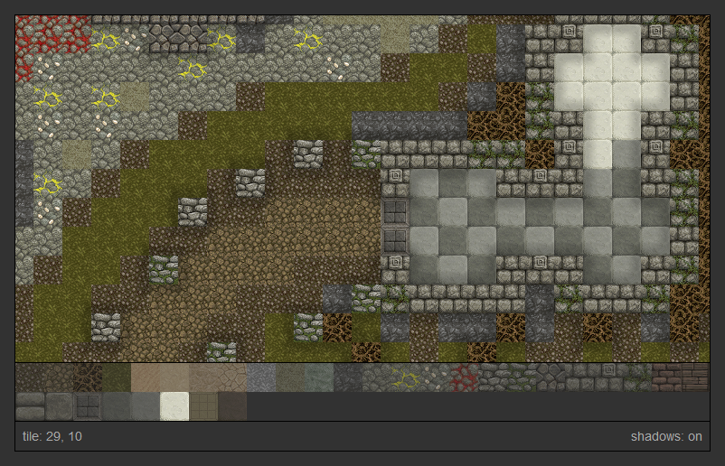 Прикрутил панель с тайлами, и нарисовал ручками простенький уровень, вот два скриншота, с тенями и без: