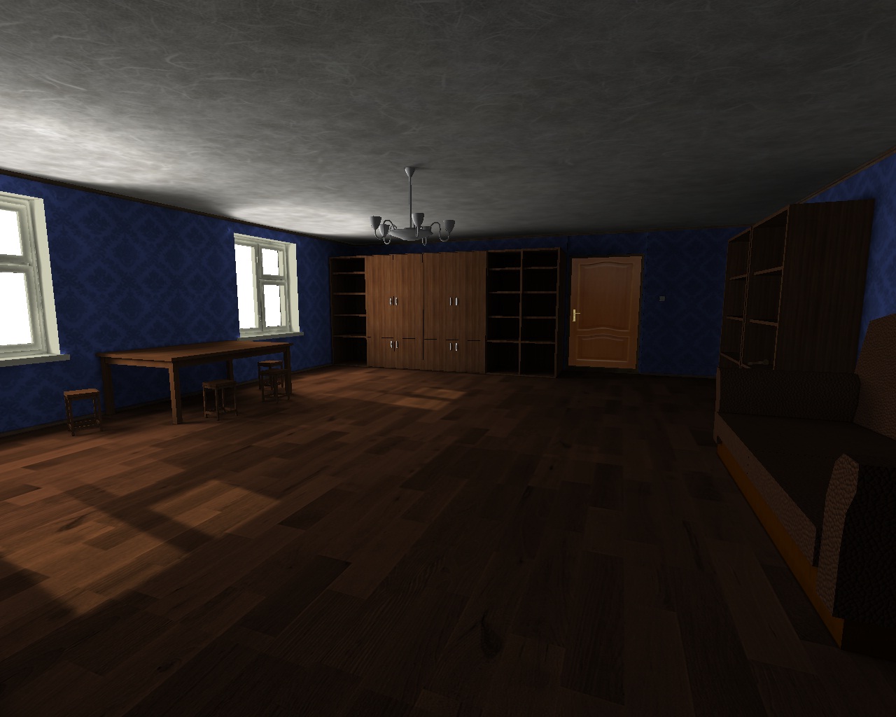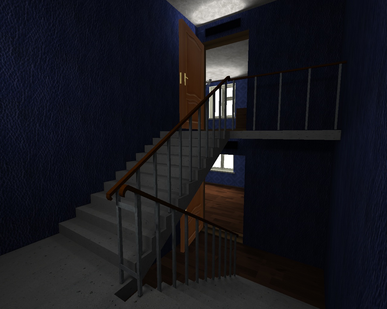 Управление: бег WSAD, идти shift+WSAD, открывание дверей кликом мышки по ручки, брать предметы тоже кликом, кнопка дейстий е