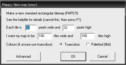 Во второй строке вводим два числа - это ширина и высота создаваемой карты в клетках. В нашем случае это 24 * 24, но вы можете указать любые размеры. Всё, нажимаем на OK для создания новой карты.
