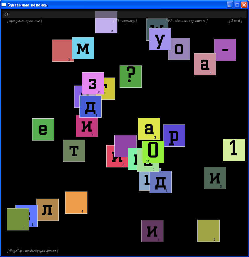 [ Фраза ] Составленная фраза пишется вверху экрана; под ней - подсказка.