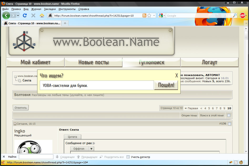 2. Поиск заменён на гугловский. Теперь не надо самому лезть в гугол и писать блаблабла site:forum.boolean.name