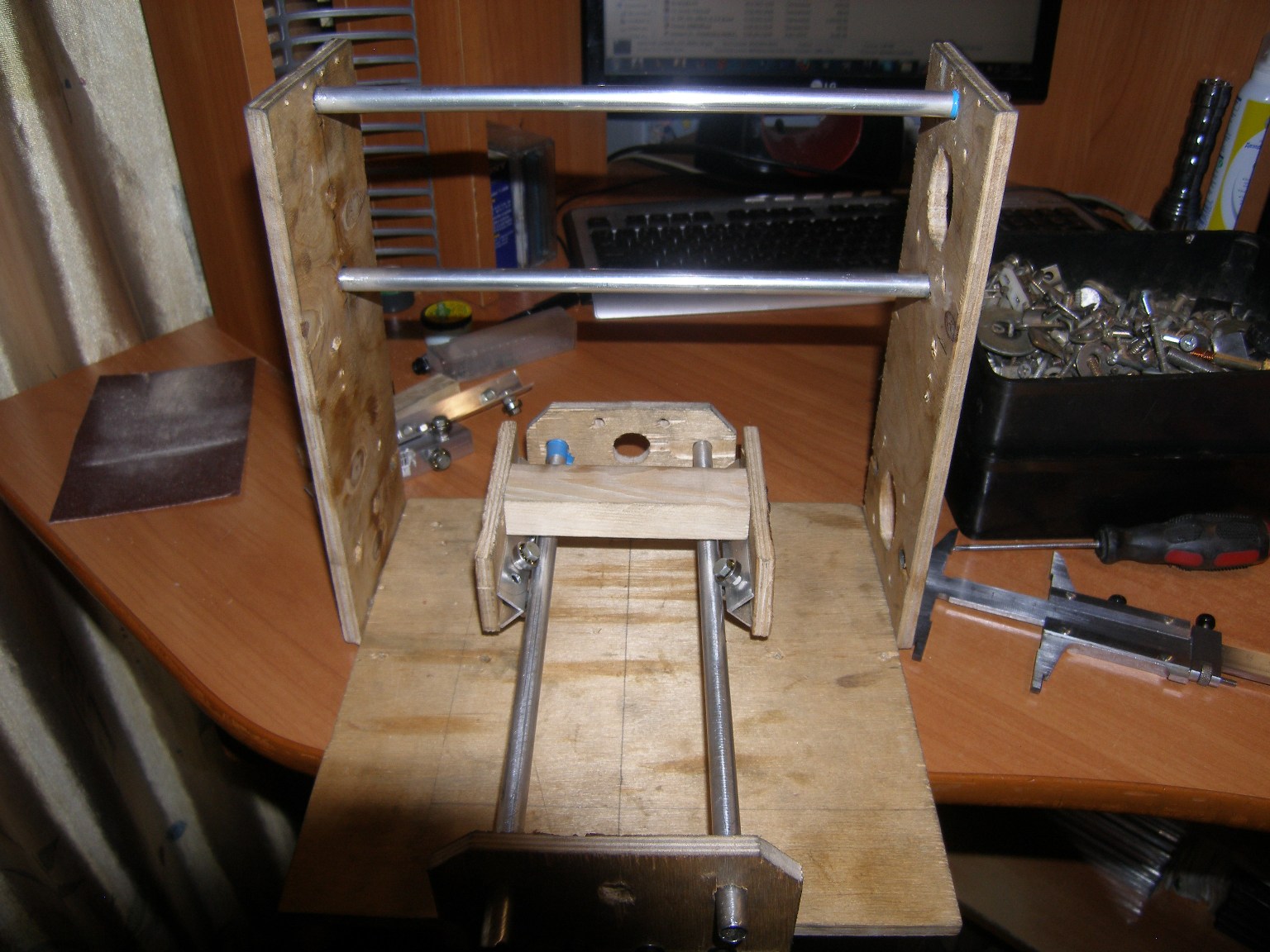 Ось Z готова э! На ось Х прикрутил "столик". Пора проводить юстировку. Видео выложу завтра.