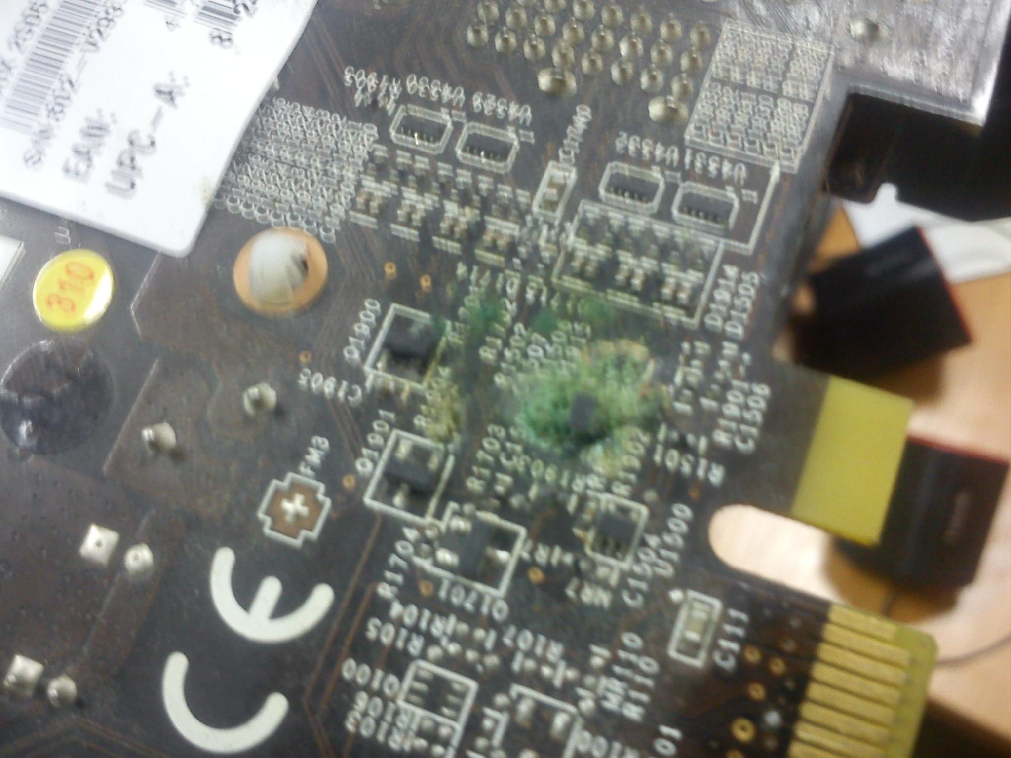 Ну тут, судя по фотке, может быть не так печально. Но вот вопрос - КАК ЭТО оно так окислилось? Это явно чем то залили видюху в этом месте, не могло оно ВНЕЗАПНО так зарасти окисью. Но, с другой стороны, это нижняя сторона платы вроде как, странно всё это.