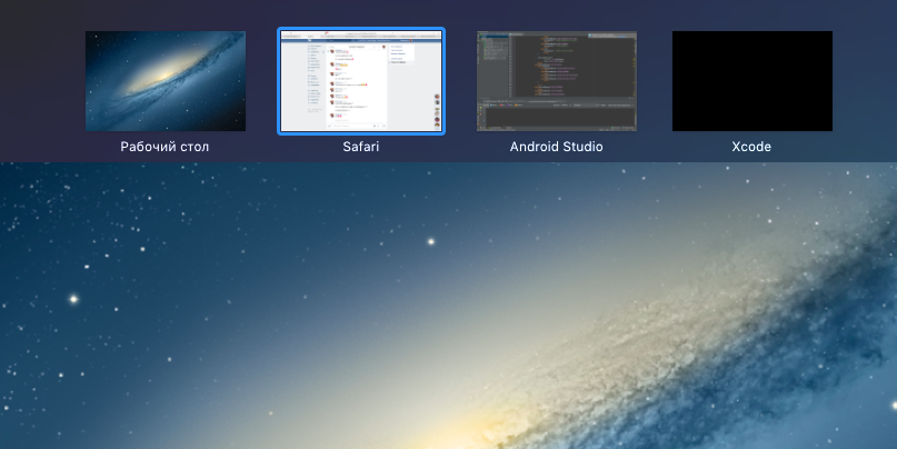Вот, например, я работал в xcode, в полном экране, потом захотел его закрыть и нажал cmd+q (способ закрытия не влияет на результат). Всё вроде как закрывается (по крайней мере система переключилась на другой рабочий стол с видом как-будто всё нормально и в диспетчере задач приложение не отображается как запущенное), но вот почему-то в Mission control на месте "стола" приложения чёрный прямоугольник: